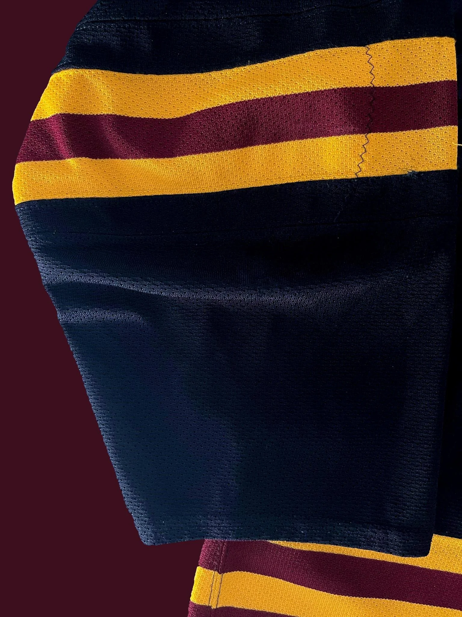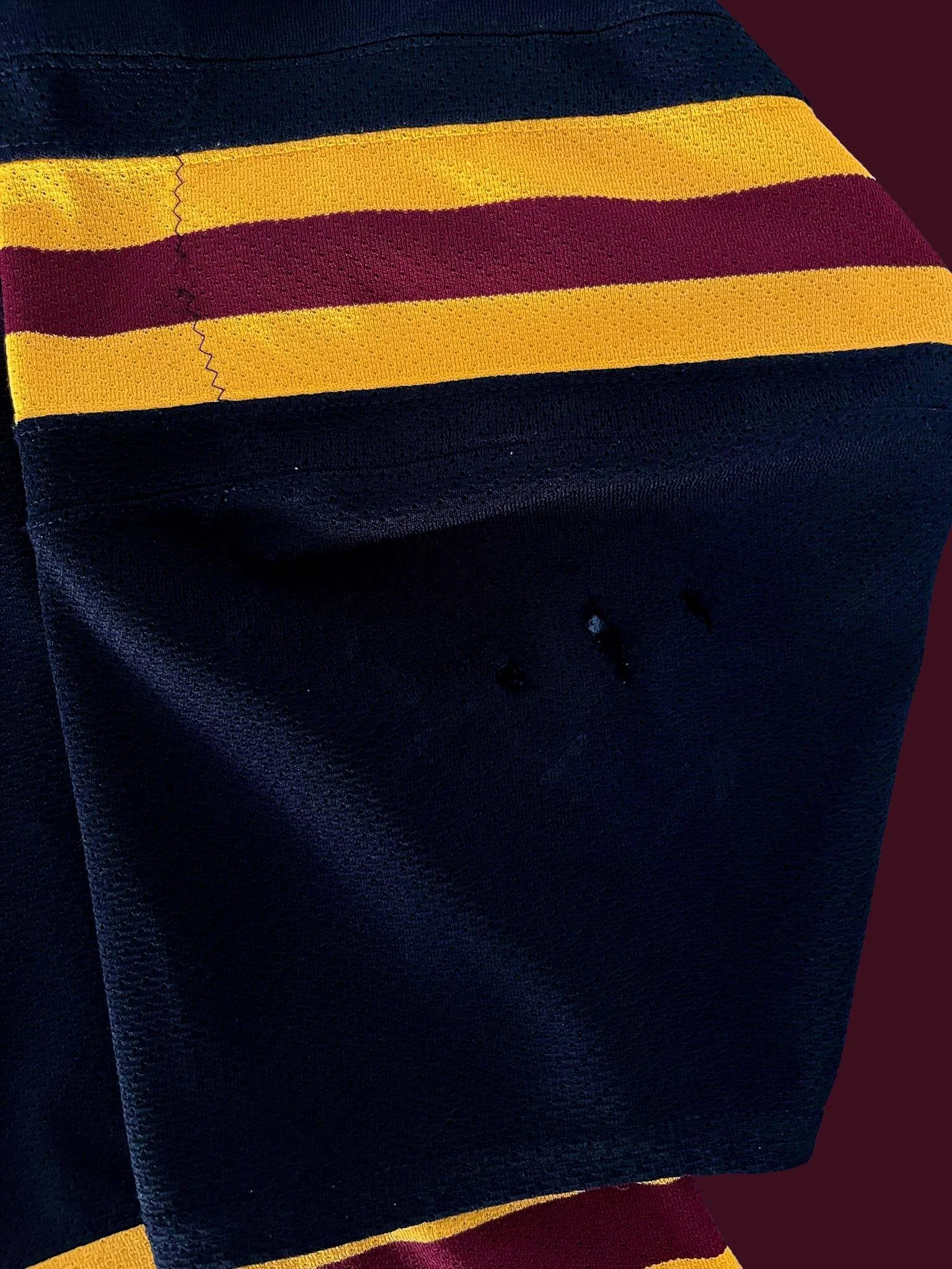 The neatest aspect of this gamer is the unique alternate captain’s “A” on the left breast. These were embroidered letters sewn onto a double layer Arizona state border outline and they absolutely pop on both the white and black sweaters.