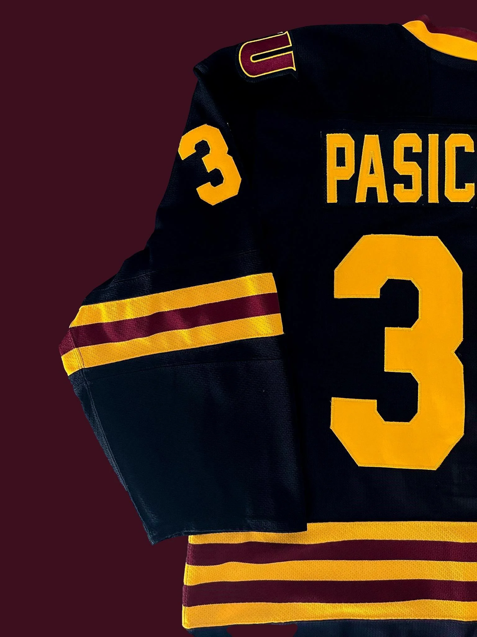 Pasichnuk’s jersey has loose threads in the nameplate and back numbers, particularly a long one on the #3.