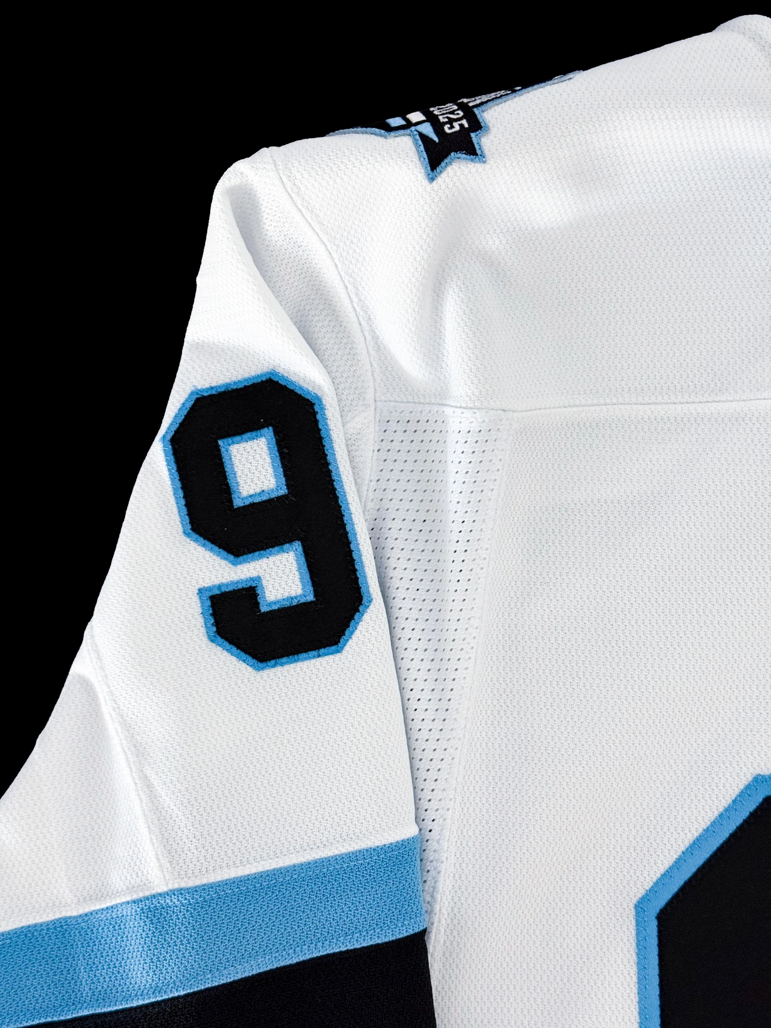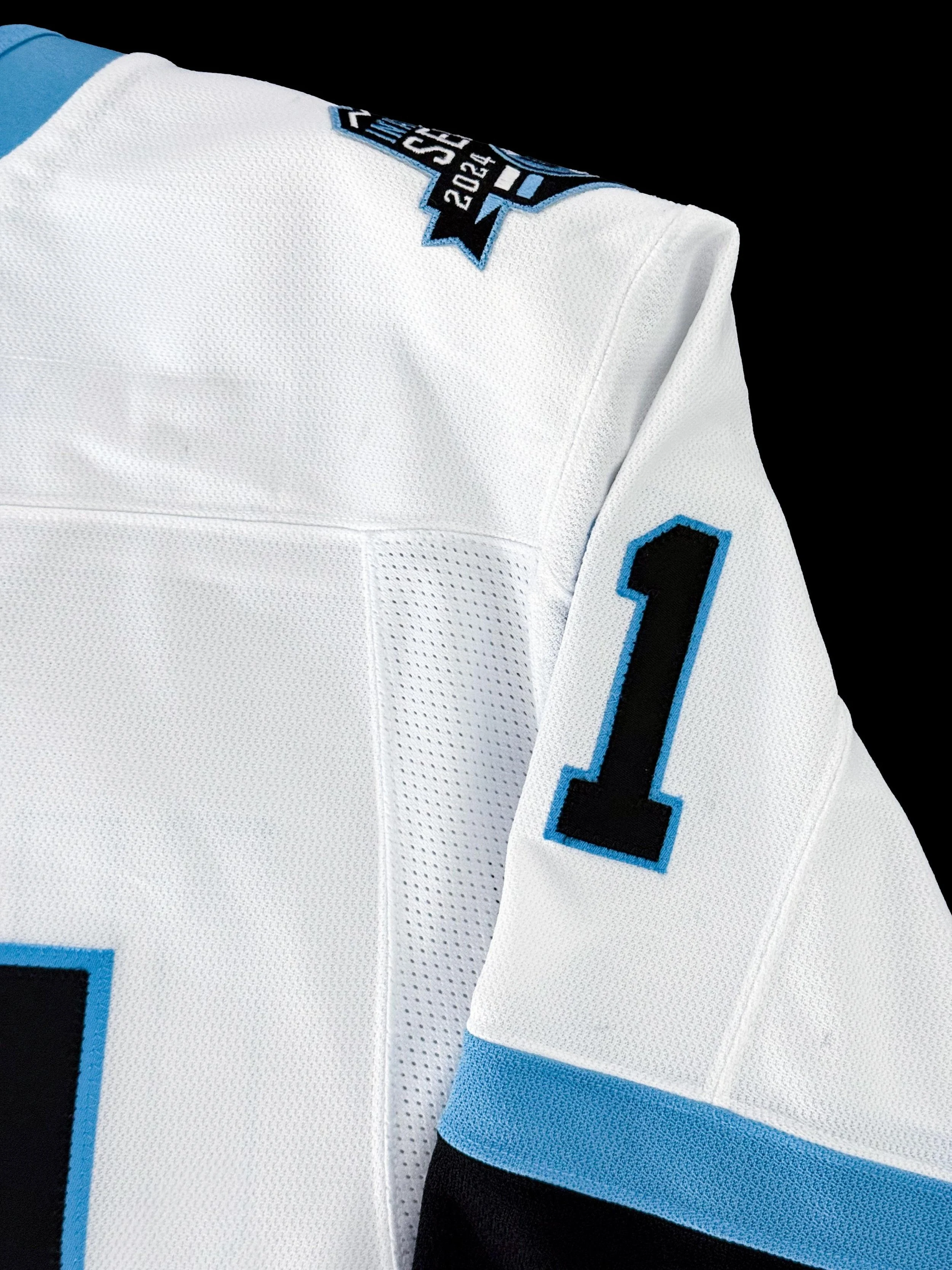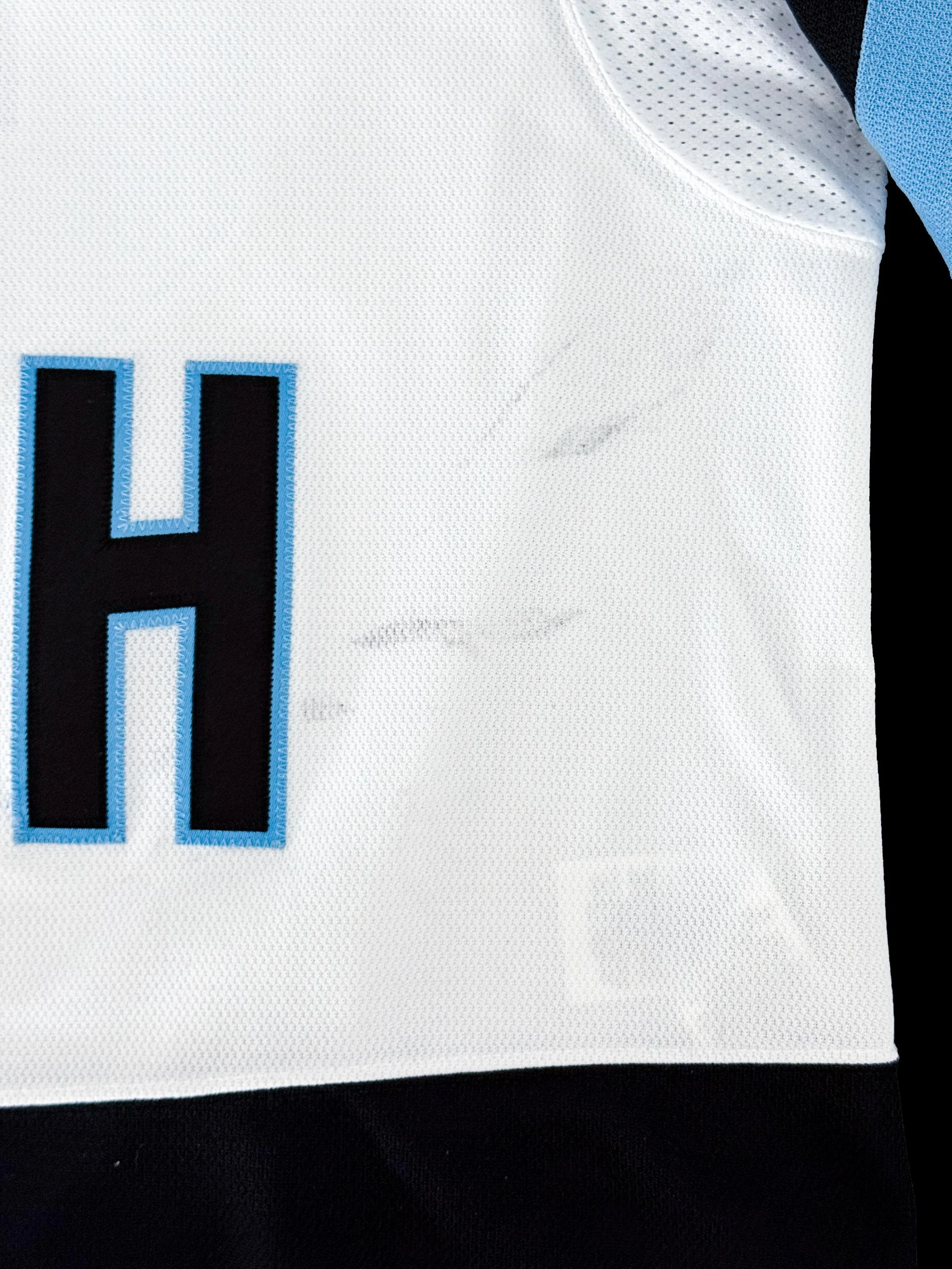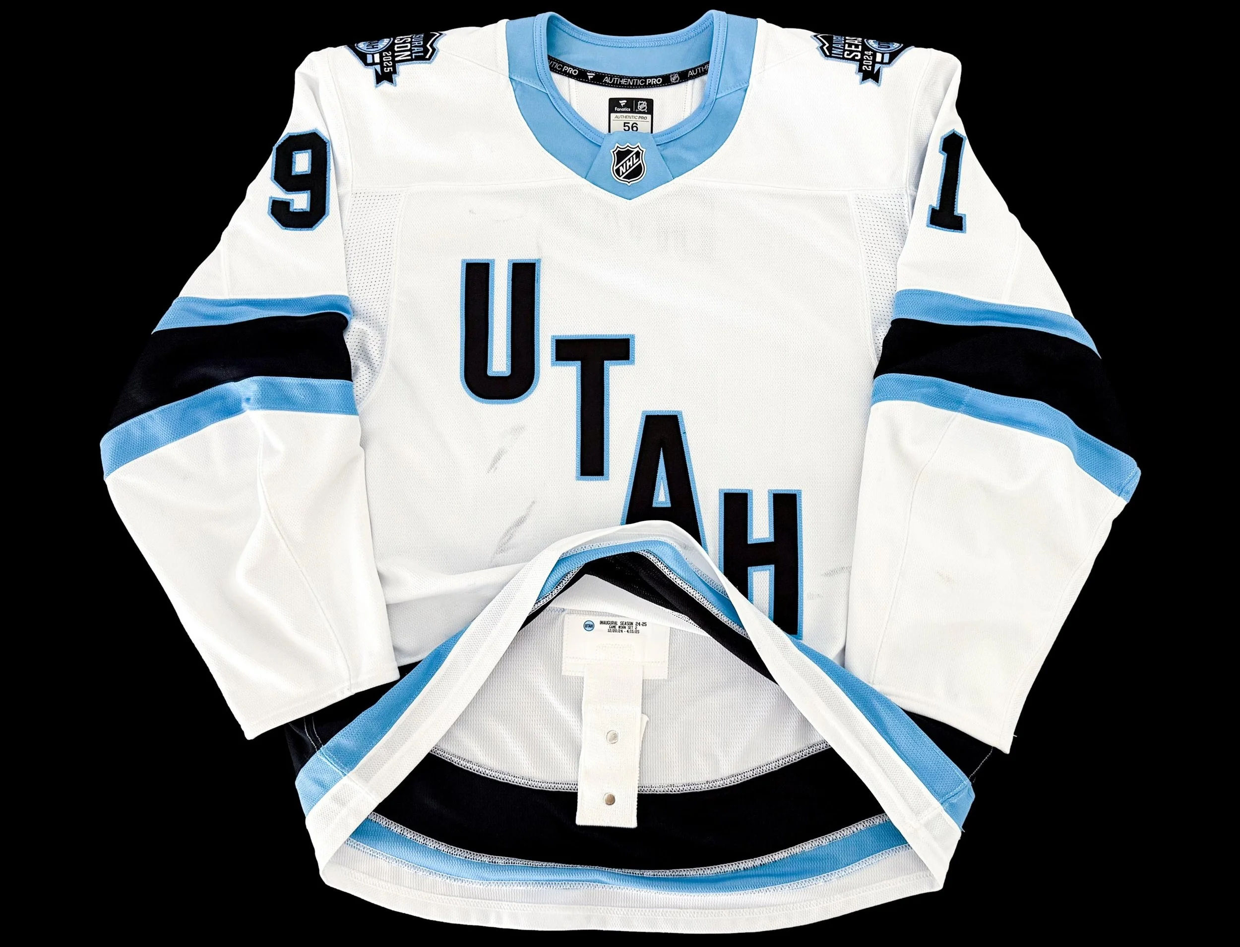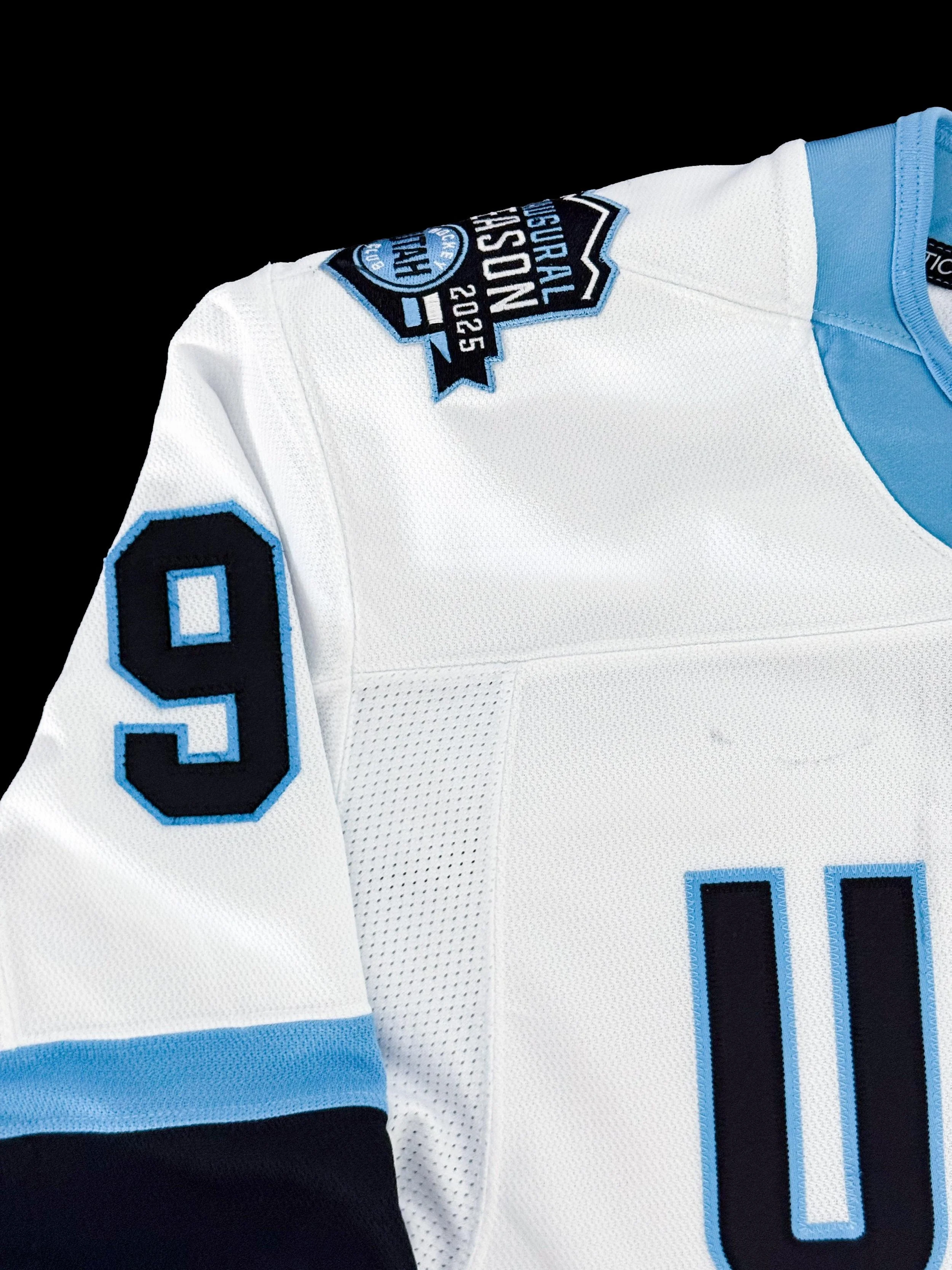 The Utah Hockey Club wore two sets of their white away jerseys in 2024-2025, though there is evidence that there were potentially other jerseys used. The White Set 2 set dates are listed on the set tag as December 20th, 2024 through April 15th, 2025.