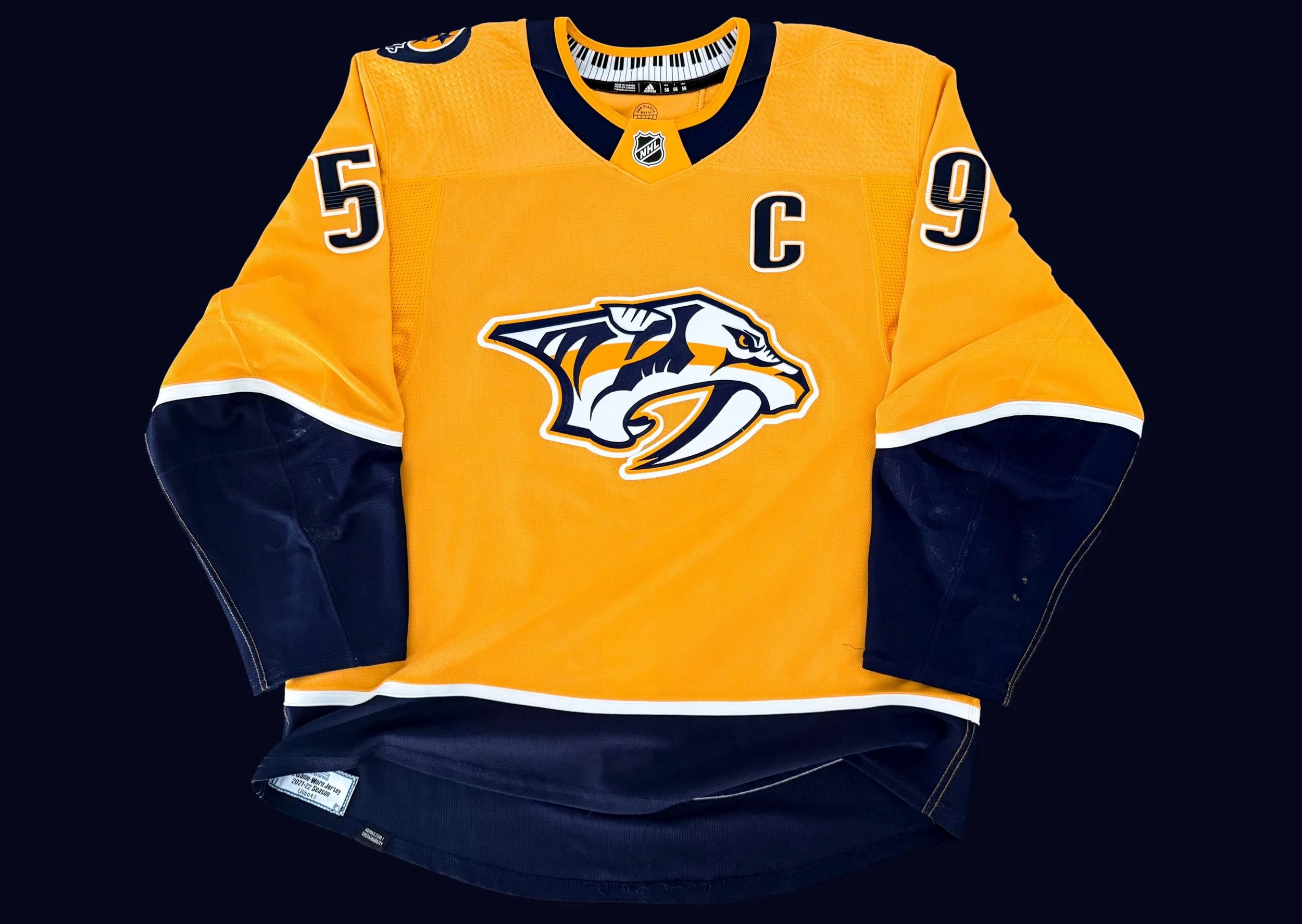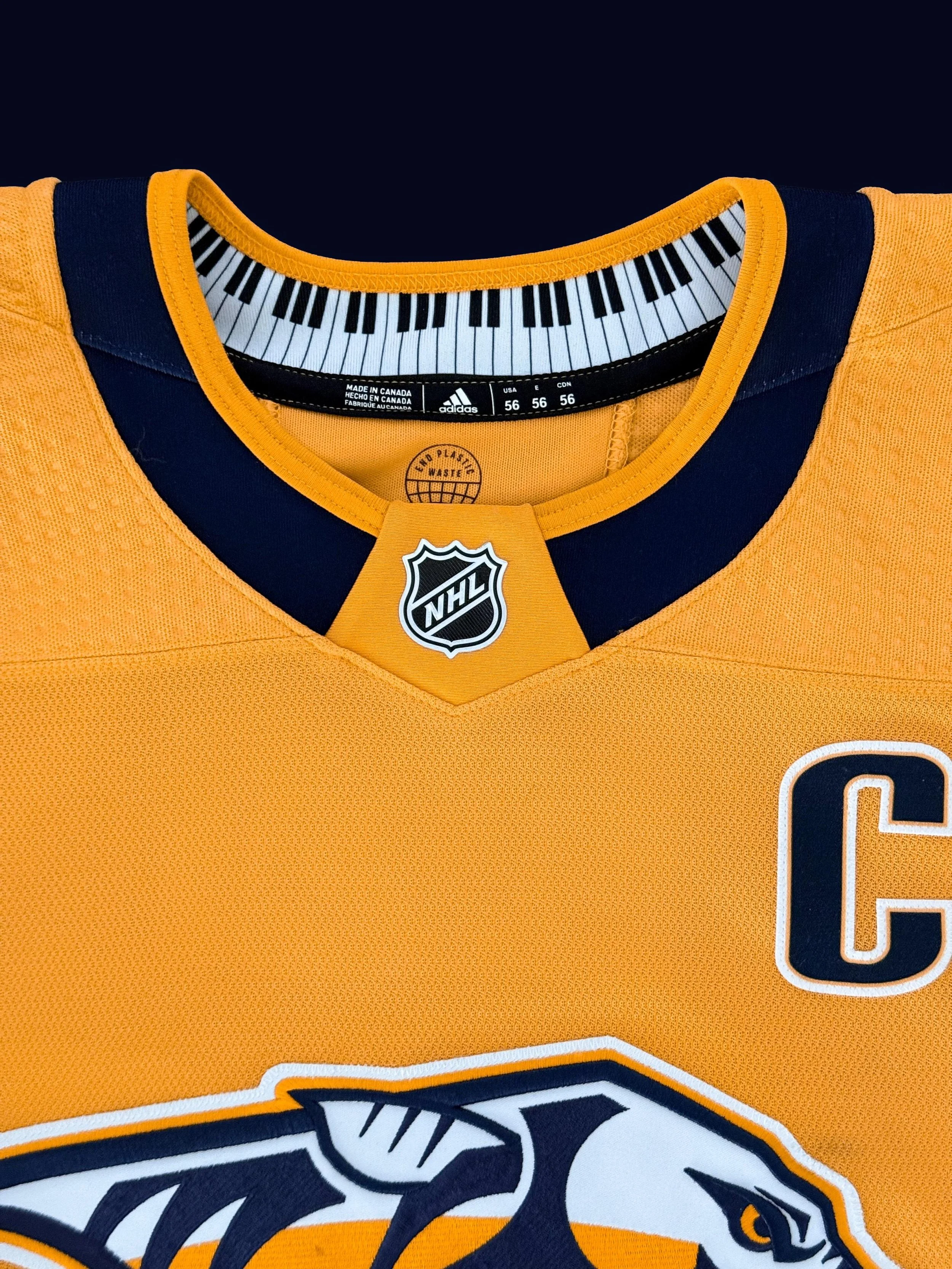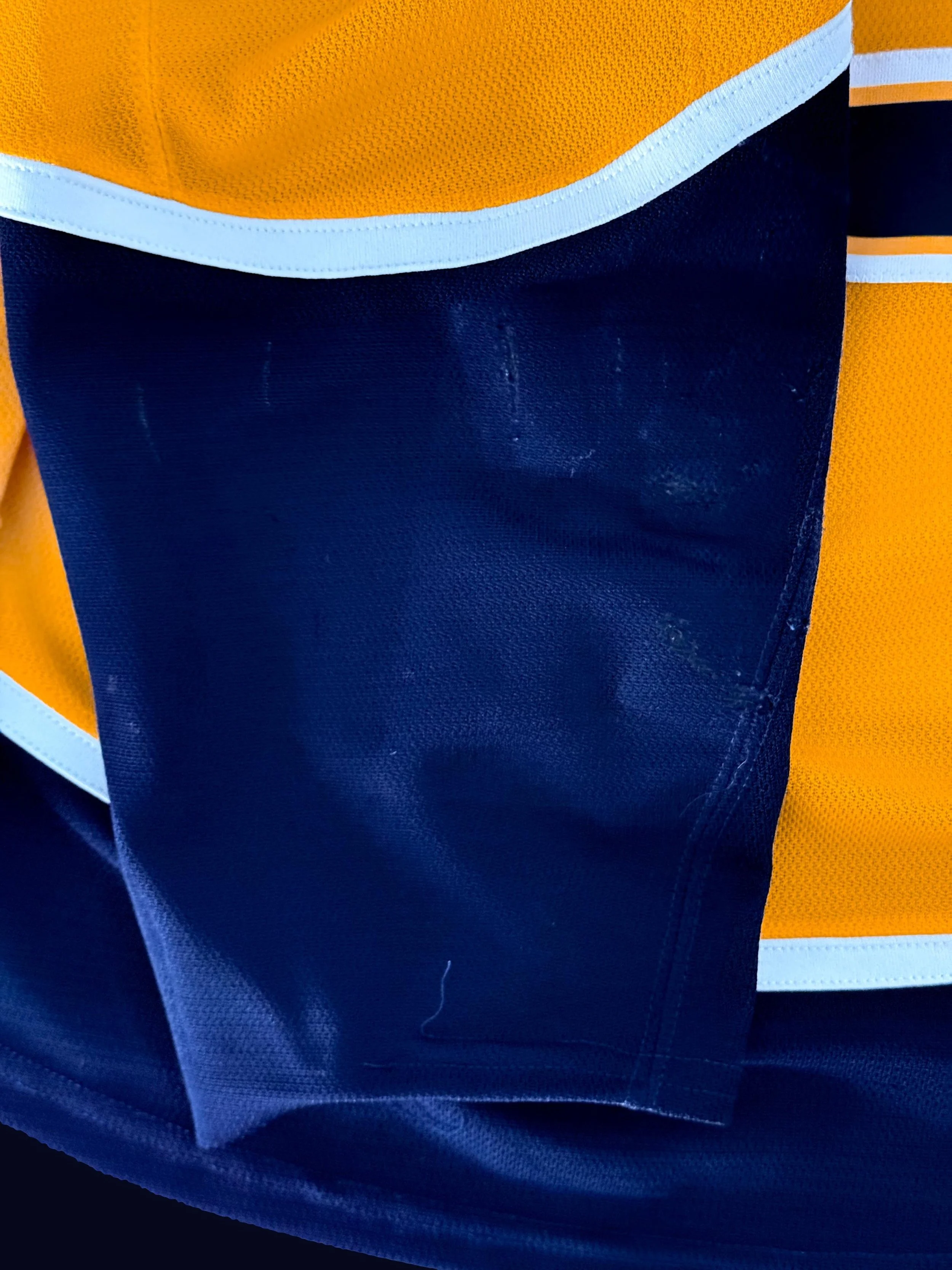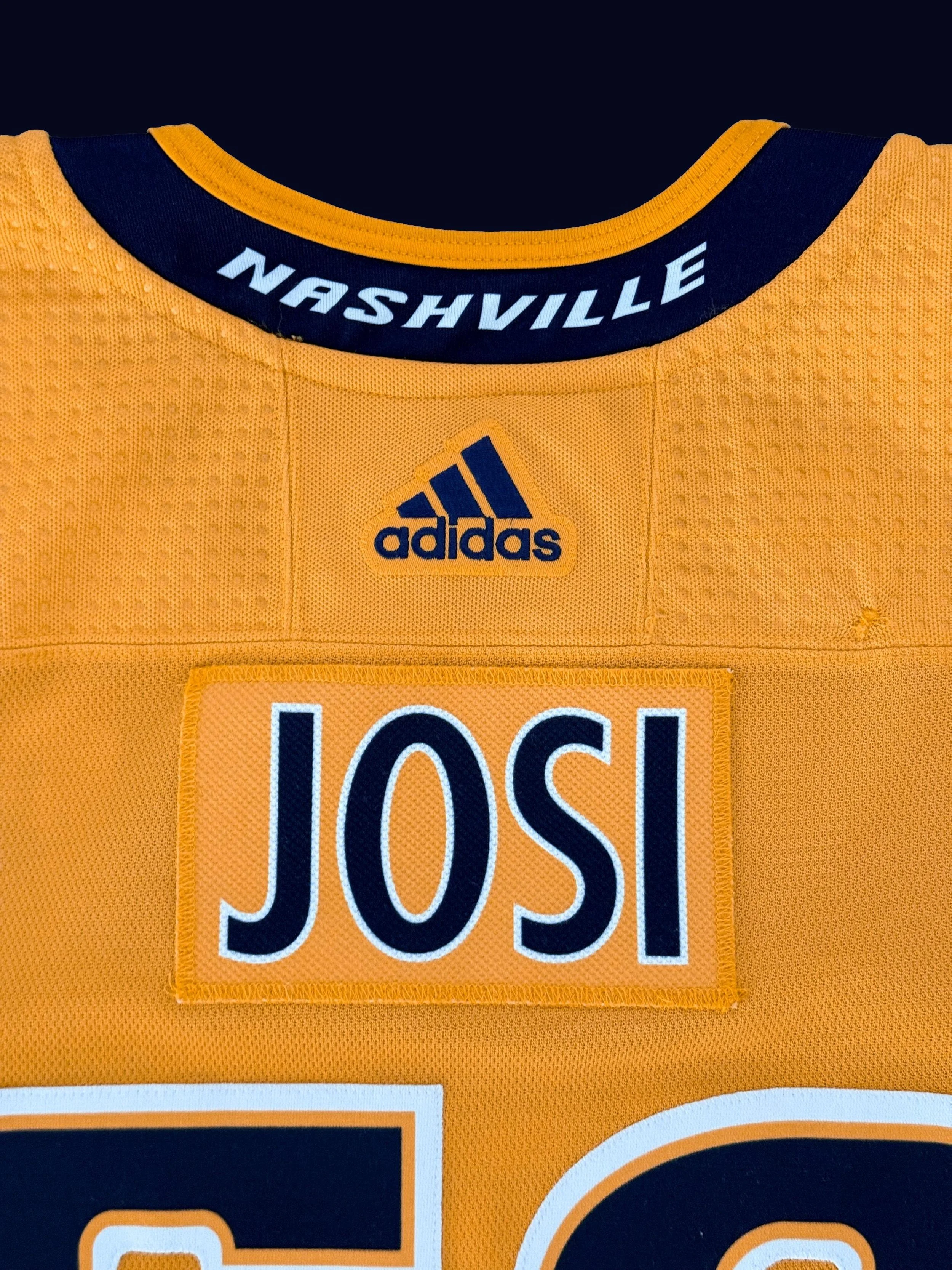 Roman Josi’s Gold Set 1 gamer has a tremendous amount of wear for a Josi sweater.