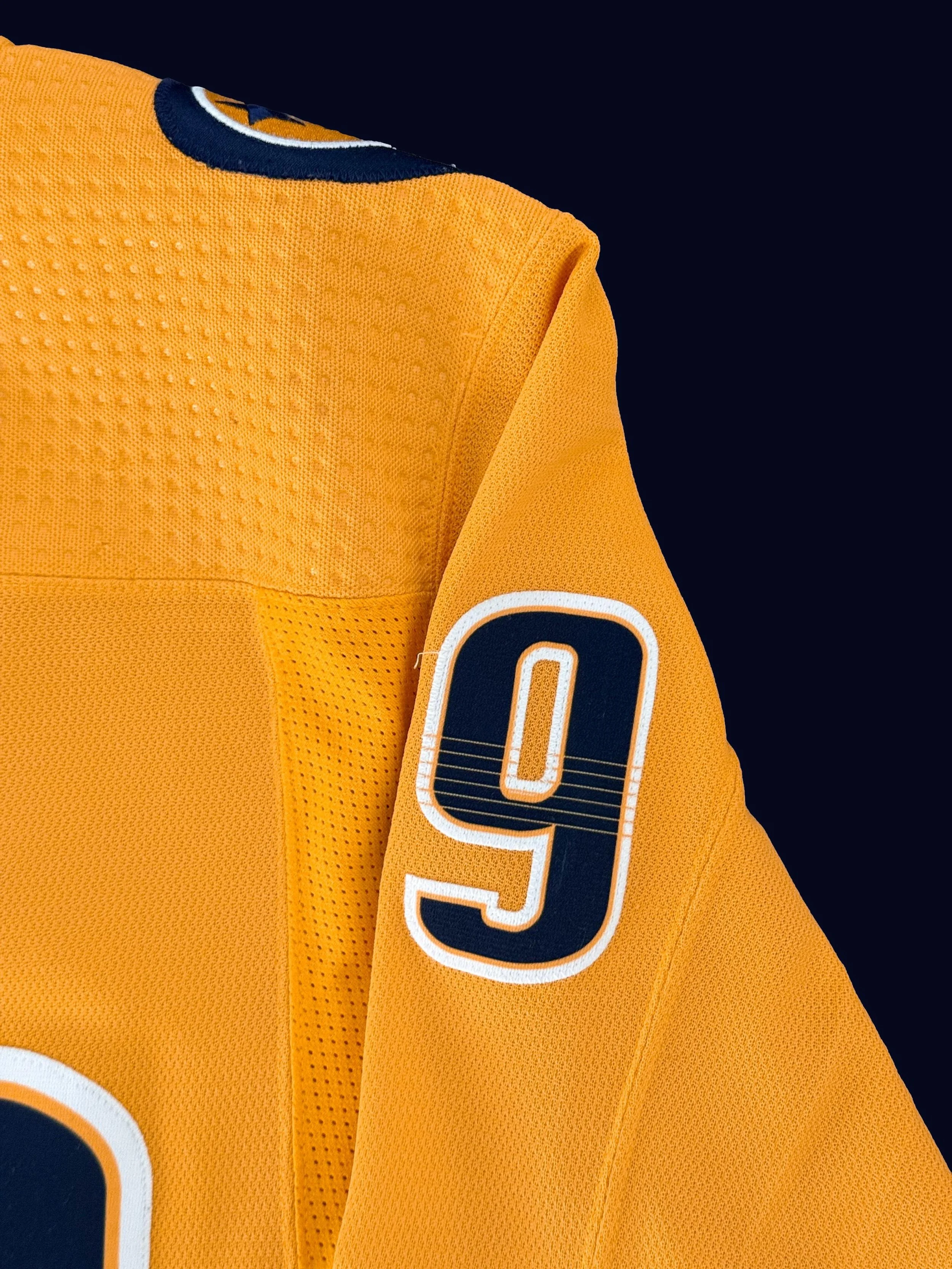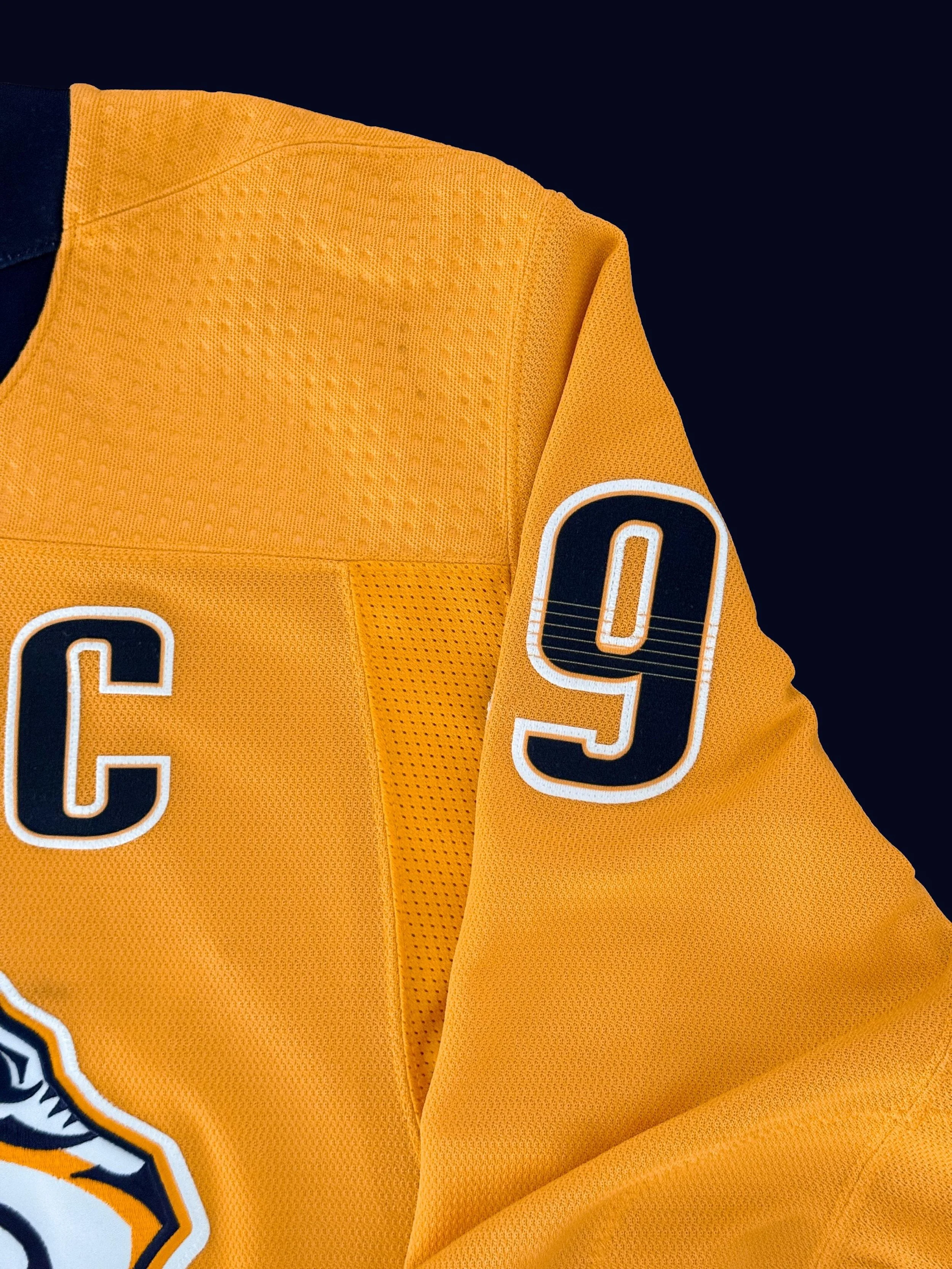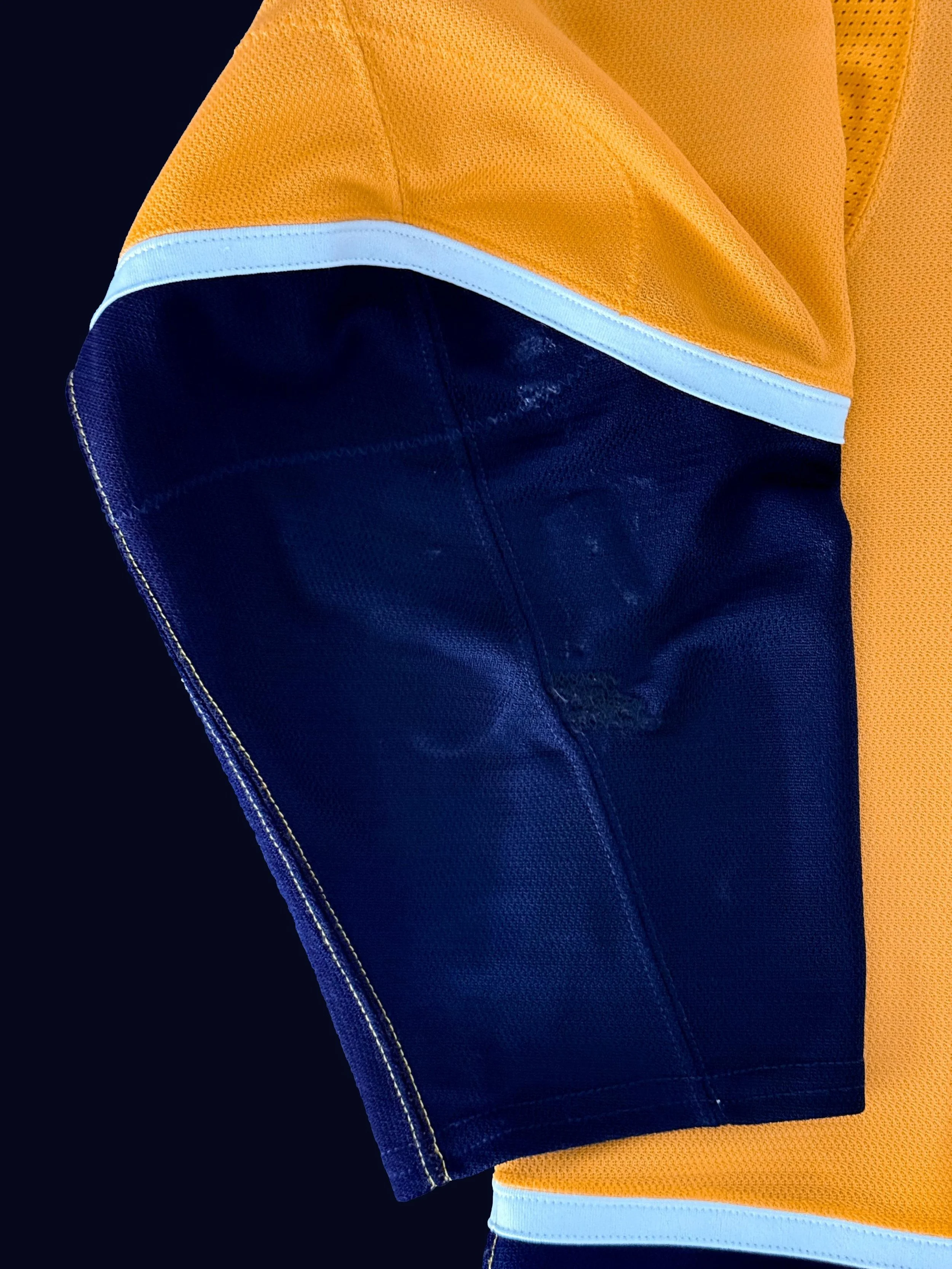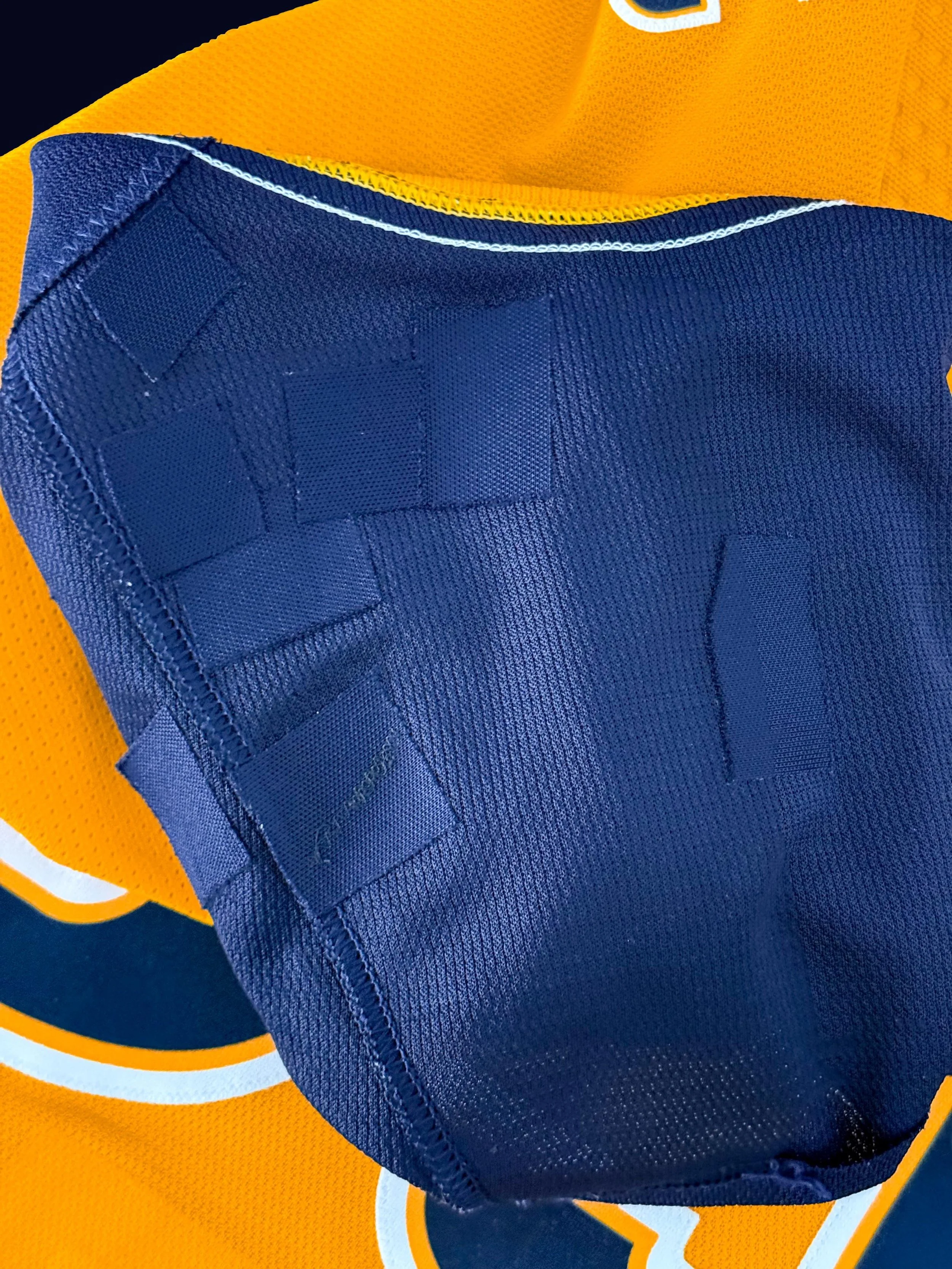 Roman Josi’s Gold Set 1 gamer has a tremendous amount of wear for a Josi sweater.