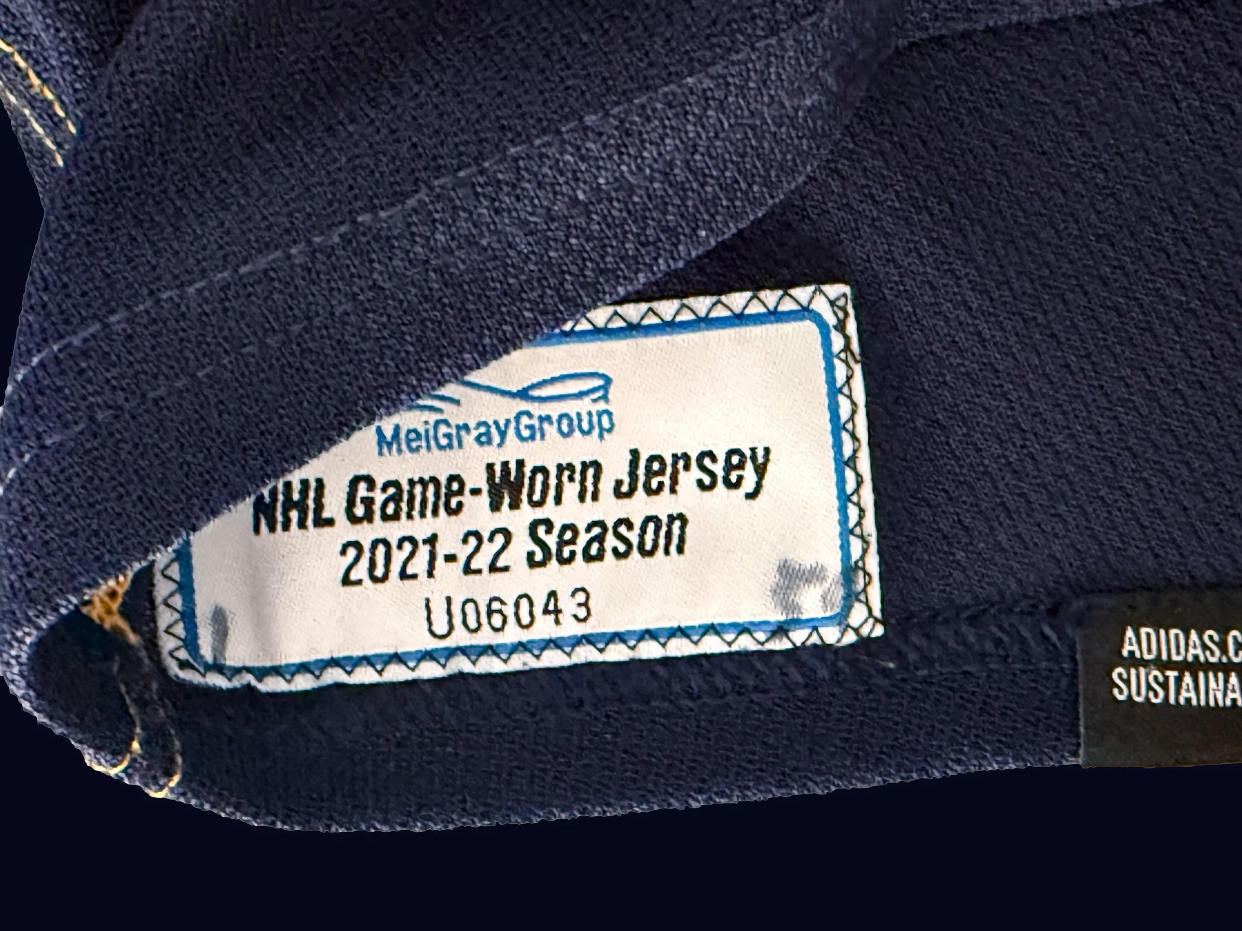 On the front of the jersey there is a faint stick mark next to the sabretooth tiger’s eye and below the captain’s “C”, as well as next to the sabretooth fangs.
