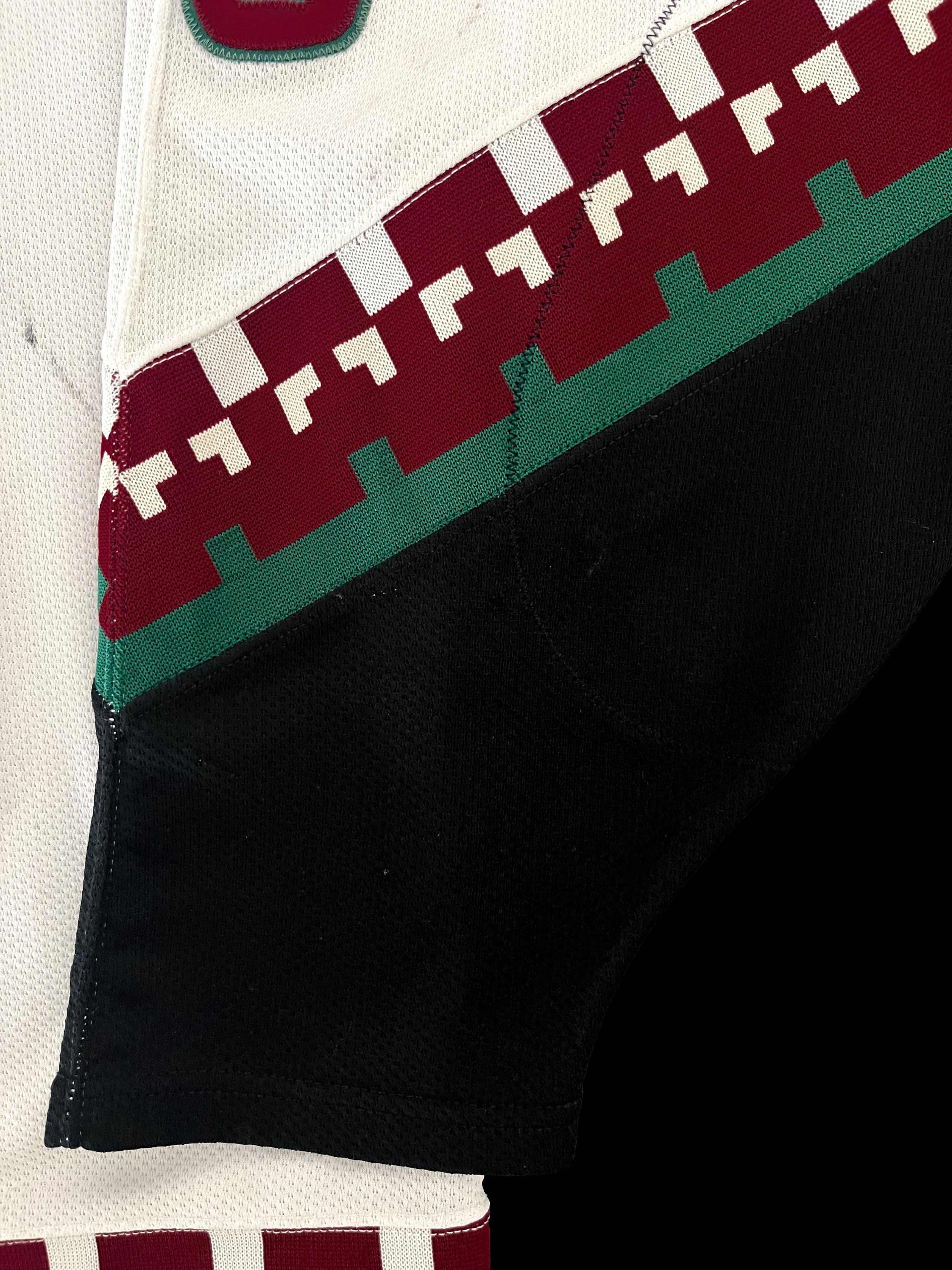 The Phoenix Coyotes wore their White Set 2 game worn jerseys in the second half of the 1997-1998 season. I have been unable to discover if there was a third set for the playoffs.