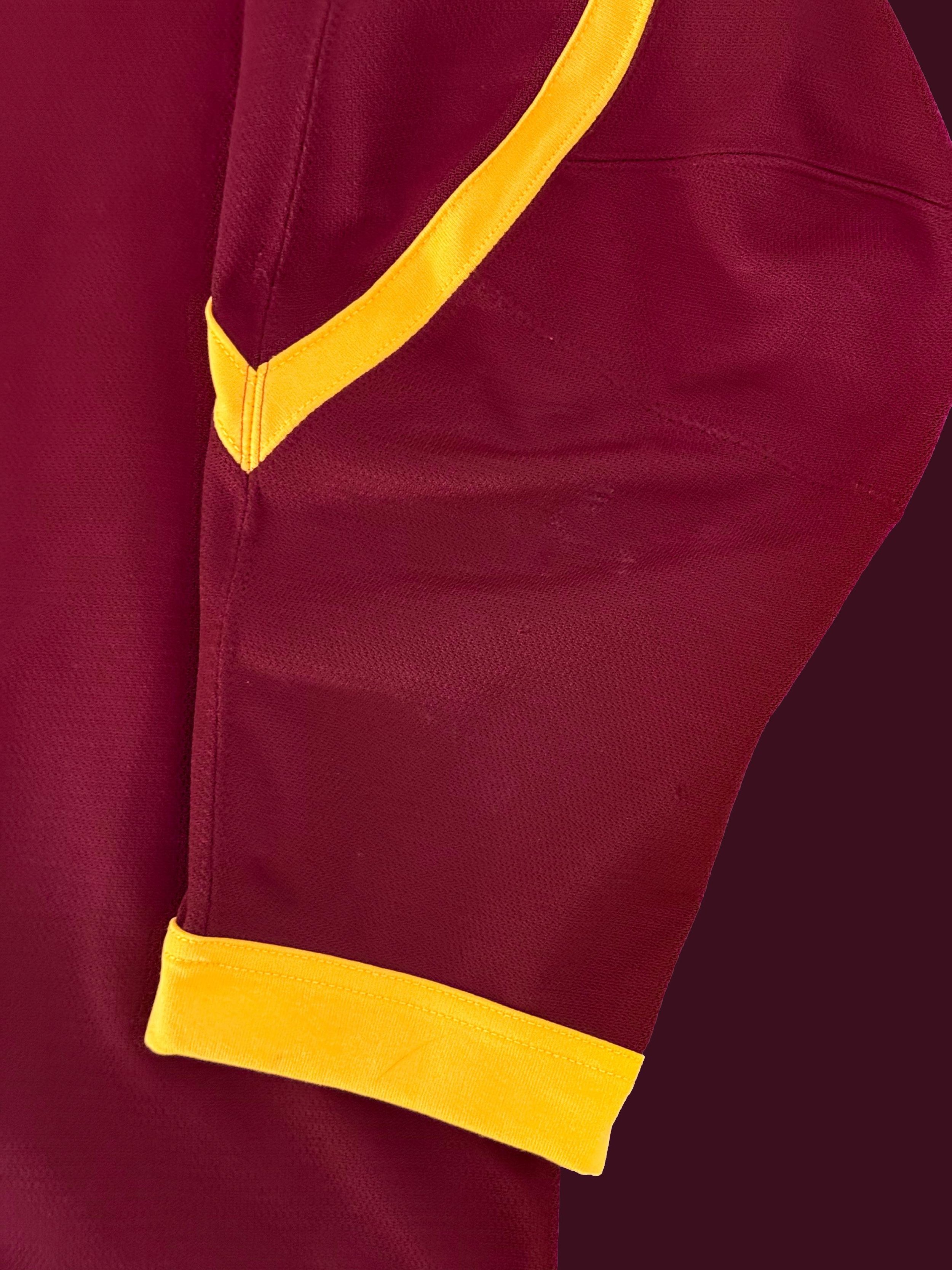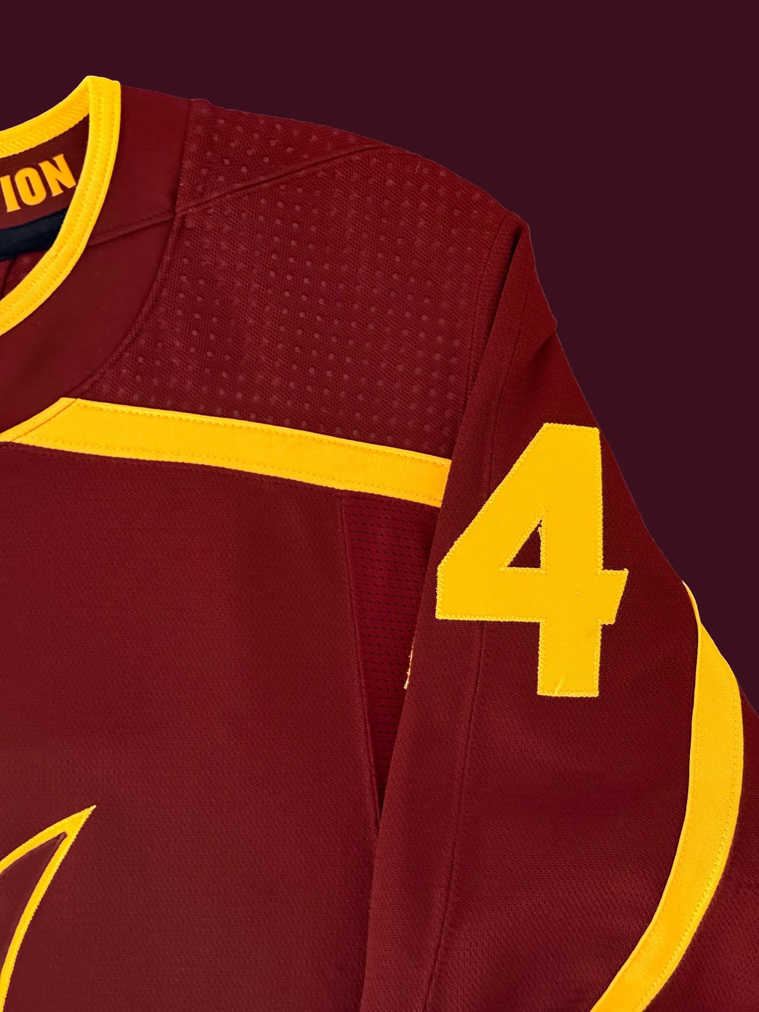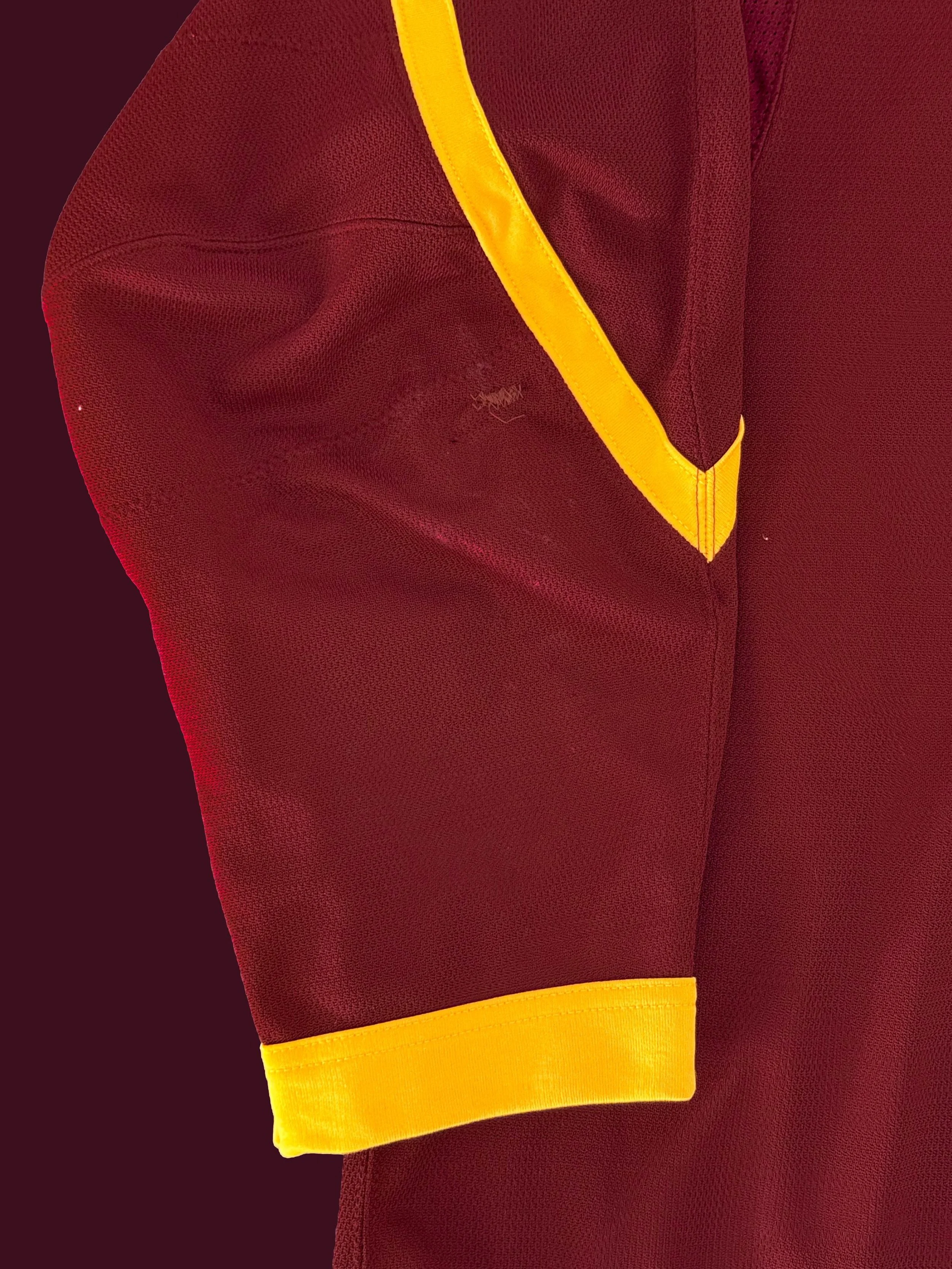 Jackson’s jersey lacks a set tag like virtually every other maroon set game worn jersey. Having spoken with the ASU staff, there was no discernible reason for the lack of a set tag; it seems to have just been overlooked when being customized by EPS.
